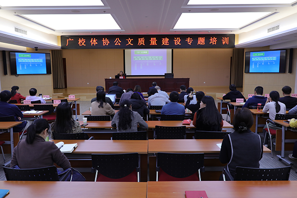广校体协邀请办公厅文电处处长翟翠霞作公文质量建设专题培训,从公文常识、行文规则、公文格式、公文写作、公文审核、公文运转6个方面介绍基本要求,运用典型案例梳理公文办理注意事项,针对性指导性操作性都很强。