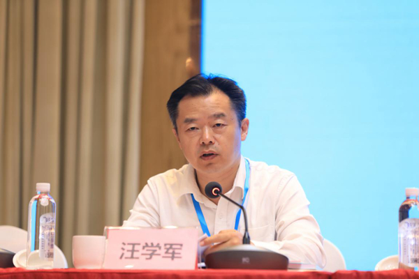 中央农业广播电视学校党委书记、中国农民体育协会秘书长汪学军作工作报告