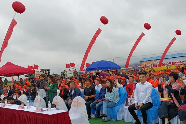 本网讯 9月23日,安庆市宜秀区2023年高素质农民培育班参训学员组织参加了以“庆丰收、促和美”为主题的“2023年中国农民丰收节”安庆市主会场活动,此次活动在宜秀区国家现代农业科技示范展示基地罗岭镇东方圩举行。活动现场排开4台大型收割机,伴着喜气洋洋的锣鼓声,驶向美如画卷金灿灿的稻田。此次活动不仅有锣鼓、原创黄梅小戏、歌舞等乡土文艺节目轮番上演,举办了特色红米产品品鉴暨红稻产业研讨会,宜秀区特色农产品及非遗展,网红直播促销农产品等活动。
