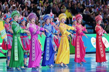 全国“村BA”中部赛区在极具土家族特色的《土家迎客歌》与《六口茶》歌舞中开启,以浓墨重彩的文化笔触绘就全国“村BA”以赛促文、以文兴村的振兴图景。整场文艺展演分为“土苗风韵”“八方来客”“直尕思得”三大篇章,节目《鼓舞咸丰》《咸庆丰年》《来的都是客》等深度融合非遗文化、农耕记忆与民族歌舞,不仅生动呈现鄂西南地区深厚的文化底蕴,更彰显“村BA”在涵养文明乡风、凝心聚力、强身健体的重要作用。当晚进行的揭幕战充分展现乡村篮球凝聚乡村人气、激发振兴活力的平台作用,打造出一场真正属于农民、扎根乡村、助力振兴的体育文化盛会。