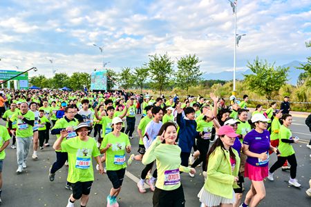 本网讯 11月23日,2025年大地流彩·全国和美乡村健康跑活动(村跑)广西贺州富川站在富川瑶族自治县农产品电商产业园开跑,来自全国23个省(区、市)的3889名村跑爱好者参与。