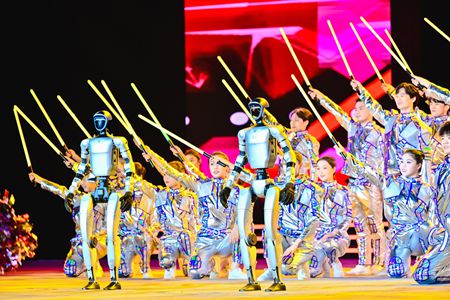 当晚的村晚将活动推向高潮。八桂欢歌《山歌献瑞·霓彩传情》、瑶风雅韵《锦绣瑶乡·喜迎客来》、天籁民韵《云琴醉歌·山水和鸣》通过瑶壮山歌、特色织锦、马山会鼓等特色表演,展现民族文化魅力;丰收赞歌《鼓舞丰登·橙香满径》见证农耕文化与现代文明的完美融合;AI领航《智创未来·科技兴农》通过机器人舞蹈与智慧农业场景展示,呈现科技赋能乡村振兴的创新成果;在《四季繁花·同心奔跑》的旋律中,村民与跑友携手欢歌,展现了新时代农民昂扬奋进的精神风貌,为全年村跑活动画上圆满句号。
