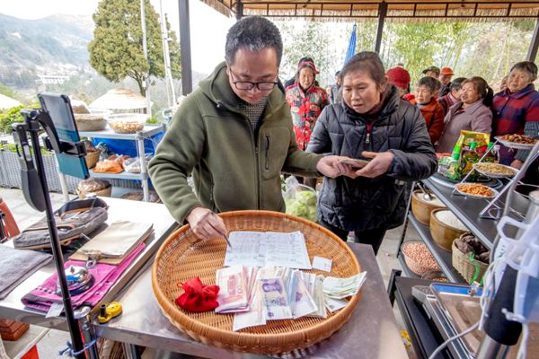 2024年3月,“桐槽村网上集市”首次直播,附近村民带来的土特产很快销售一空,当场带货销量达7000元。