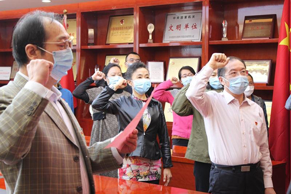 本网讯 2020年4月26日下午,中央农广校党委第二党支部组织全体在岗党员参加“开展集中学习、畅谈入党感想、重温入党誓词”主题党日活动,会议由党支部书记王桂林主持,常务副校长、党委副书记、副秘书长胡永万以普通党员身份参加会议。
