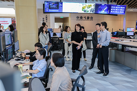 两个支部的党员干部与国家气候中心党员干部围绕推进党建业务深度融合,党员干部如何立足本职岗位、服务中心工作深入交流,并先后参观了中国气象科技馆、中央气象台以及气象频道演播大厅。大家走过古代气象走廊,回顾了中华民族气象活动的悠久历史;驻足近现代气象化展厅,看到了发祥于延安,奋斗于新中国成立以来的人民气象事业的蓬勃发展,走进近百位气象学专家的奋斗故事;在现代化气象展厅,了解到海洋与极地、高空气象、地面观测多方面的气象事业已走在世界前列。通过实地观看台风监测、暴雨预警等多项气象监测工作场景,深入学习农业气象的研究进展与工作成效;通过“查询我的生日天气”、天气预报播报互动等活动,切身体验如何通过全媒体开展气象预报,更好服务百姓生活。