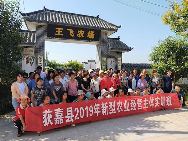 本网讯 9月4日,河南省获嘉县新型农业经营主体培训班学员100余人,在农技推广中心副主任马彩云、农技站站长王红灿的带领下,来到夏邑县,在农广校负责同志的带领下先后参观考察了王飞农场、龙港湾智慧农业、永震农业等夏邑县农民教育培训实习实训基地。获嘉县农业农村局科教股股长王林谦、财政局农财股负责人随行,对考察工作进行监管。