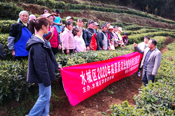 水城区农广校根据省、市关于高素质农民培训工作的文件精神,结合农业工作茬口和农民需求导向,第一时间制定了高素质农民培训实施方案,及时采购教学用具、学员教材、办公设备、耗材等,采取了课堂教学、现场实践教学的方式,于2021年2月18日启动培训,累计共开办高素质农民培训班10个,涉及专业均为茶叶采摘。