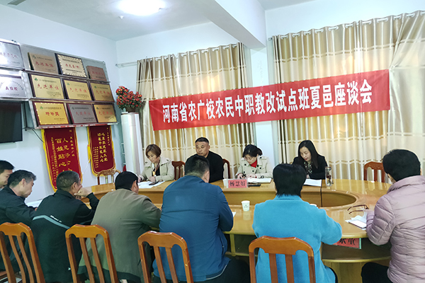 本网讯 为确保教学改革试点班的培养质量,根据中央校农民中职教育教学改革试点工作进展情况,近日,河南省农广校到夏邑县分校针对下一步试点工作进行了座谈,省农广校教务科负责人杨慧娟、夏邑分校副校长王子朋、校长助理刘敏、档案管理人员及班主任、教师代表参加了座谈会。
