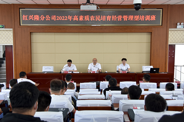 本网讯 6月30日,黑龙江农垦红兴隆分公司经营管理型农业技术人员能力提升培训班开班,本期培训班共计75人,来自分公司各农场农业生产一线骨干参加此次培训。红兴隆分公司农业发展部总经理陈月堂、红兴隆分校校长曹霞出席开班式,红兴隆分校副校长杨金昌主持开班式。