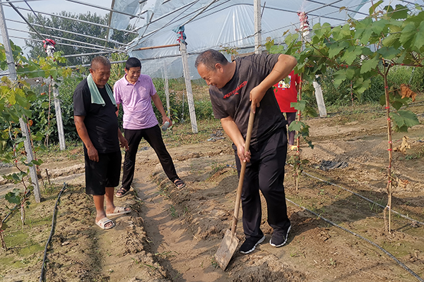 连日来,由于进入汛期,部分种植户大棚土壤出现板结,导致葡萄部分出现黄化现象,影响作物正常生长。曹庄教学班班主任蒋书廷、高级农艺师朱维轩一行人立即深入实地开展了对学员和种植户们的走访工作。为保证技术效果,朱老师亲自上阵,一边讲解,一边示范。“大雨过后务必及时排水,如果后面土壤板结,使用高活性生物菌和酵母蛋白酶能改良土壤板结。对于临近成熟期的葡萄不可乱施肥,否则可能导致裂果等现象,一定记得及时更换施肥方法,同时千万不可忽略肥水管理。”细心的指导,亲切的关怀,受到学员和种植户的欢迎。