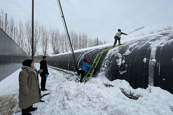 在杨铭鑫的蔬菜基地里,工人们正在清理棚上的积雪,据杨铭鑫介绍,青岛市农技中心专门组织技术人员成立了监测预警小组,加强与气象部门沟通会商,密切关注天气变化,及时把气象预警信息传达给农户,提高灾害防御能力。她表示,当第一时间知道风雪来临的消息后,她立即在大棚上面拉上了防雪网,在一定程度上减轻了损失。高级农艺师纪国才叮嘱设施蔬菜的种植户,对于棚室内处于苗期的胡萝卜、萝卜、白菜、甘蓝等蔬菜,要特别注意增温保温,防止春化造成大面积开花的严重后果。技术人员们还对设施蔬菜如何采取措施保温保湿、如何合理调整光照、施肥、防治病虫害等方面内容进行了详细讲解。