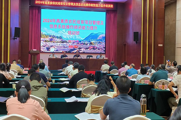 本网讯 7月2—5日,云南省2024年高素质农民培育项目管理及信息系统操作师资能力提升培训班成功举办。本次培训由云南省农业农村厅社会事业促进处、云南省农广校主办,丽江市农广校承办,云南省16个州市农业农村局分管领导、高素质农民培育项目主管单位、农广校及部分项目县负责人、农民学员等共计120余人参加了培训。