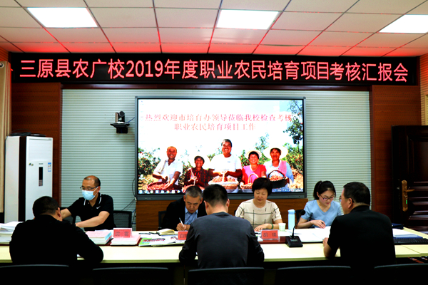 本网讯 5月14日,咸阳市农业农村局科教科科长白锦章、市农民培训中心副主任胡瑛主任、市农业农村局科教科副科长沈雷、市农广校培训科干事刘娜一行来到三原县农广校对2019年度职业农民培育项目进行考核验收,参加会议的有三原县农业农村局常朝阳、局科教股股长苟铁刚、三原县农广校常务副校长吴金营及三原县农广校教职工。农广校教务科科长肖春玲对项目实施情况进行了详细汇报,得到各位领导充分肯定。