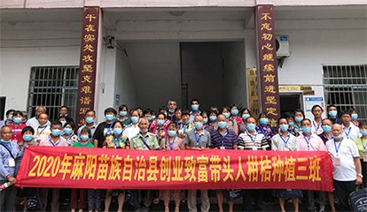 本网讯 6月9日,由湖南省麻阳苗族自治县农业农村局主办,湖南省隆平培训中心承办的2019年度麻阳苗族自治县创业致富带头人柑桔种植培训班于麻阳苗族自治县兰里镇举行。100多名来自长河蔻橙专业合作社(参与产业发展帮扶企业)会员汇聚到一起,参加为期十五天的创业致富带头人培训。开班典礼在兰里镇镇政府举行,由麻阳苗族自治县农业农村局副局长汪发国主持,麻阳苗族自治县农业农村局局长罗学艺,湖南省隆平高科培训中心主任刘均平,蔻橙专业合作社理事长满积霖出席了这次开班典礼。
