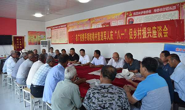本网讯 8月1日,河南省夏邑县农广校携手胡坡楼村组织复退军人,在歧河乡胡坡楼村党群服务中心召开庆“八一”促乡村振兴座谈会。