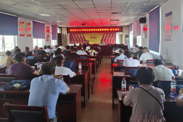 本网讯 安徽省六安市裕安区农业农村局为扩大灾后自救并提高裕安区灾区农民的灾后家禽防疫能力,同时培养出一批懂政策、能管理、善服务、勇担当的家禽防疫高素质农民队伍,适时举办了2020年裕安区家禽防疫培训班。8月5日,在六安市金安区给力培训学校的精心筹备、策划组织下全体学员于罗集乡政府会议室开课,来自全区共50多名养殖人员参加了培训。