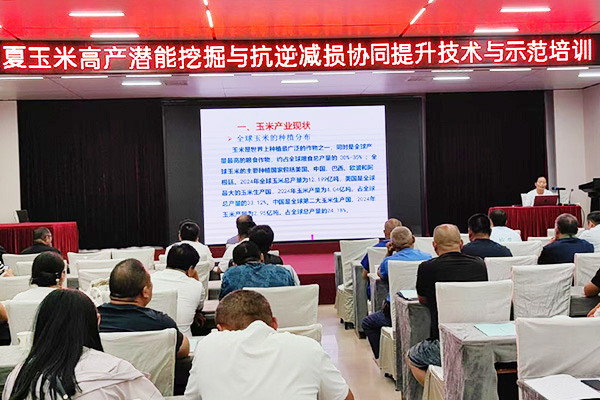 本网讯 7月26日,受菏泽市农业技术推广中心委托,牡丹区举办了为期1天的“夏玉米高产潜能挖掘与抗逆减损协同提升技术与示范”培训班。来自牡丹区各镇街的基层农技负责人、新型农业经营主体负责人共100余人参训。