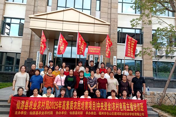 本网讯 11月8日,由仙游县农业农村局主办,福州市仓山区建鸿职业培训学校有限公司承办的仙游县农业农村局2025年高素质农民培育项目(中央资金)农村电商主播培训班圆满结束,来自仙游县的37名农村电商新农人参加培训。