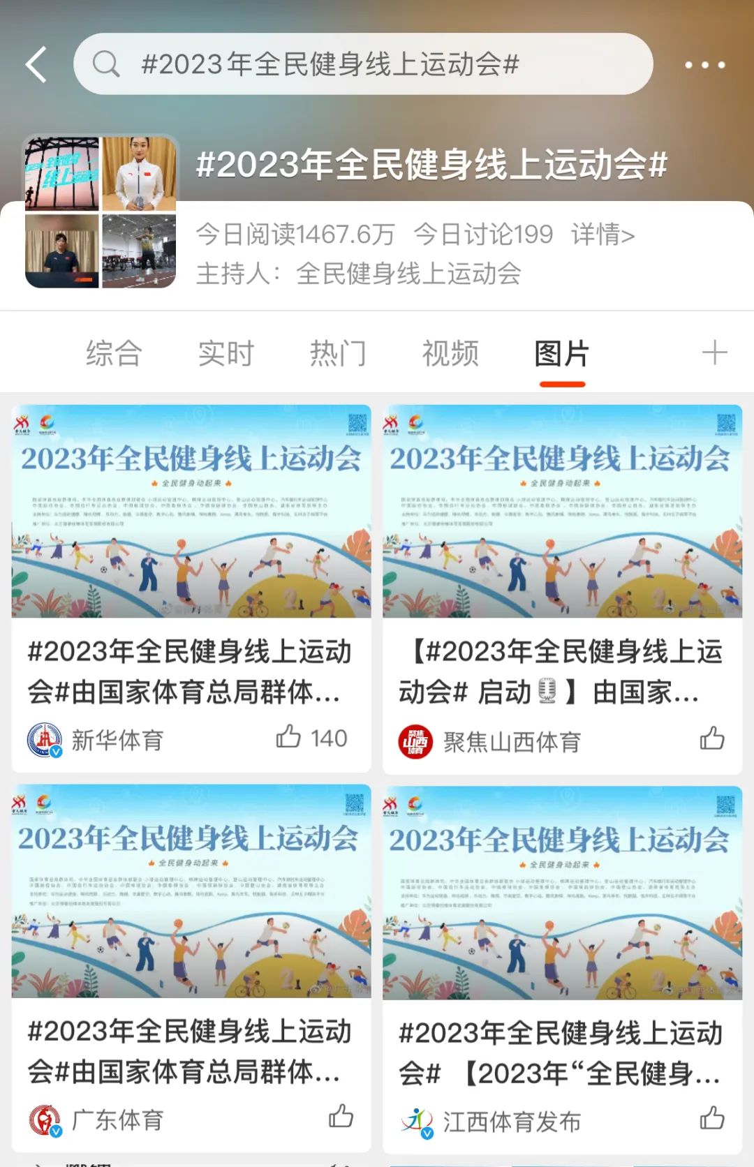 在2023年全民健身线上运动会启动后,31省市的体育局通过官网、官方微博等字媒体矩阵在积极宣传,并积极引导健身爱好者积极参与运动会,从而实现了垂直覆盖、精准传播。