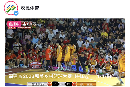 据悉,7月11—12日晚,福建省2023和美乡村篮球大赛(村BA)四强排位赛及决赛在“网红篮球圣地”——晋江英林镇东埔村开赛。比赛收获村民及众多球迷朋友的热情关注,广校体协官方抖音账号“农民体育”两天在线浏览量近30万人次,高居赛事直播榜首。