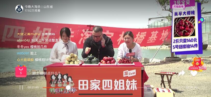 2018年9月突破日订单10万单的高峰,单品突破年销售300万斤,复制更多产品线,和政府的领办合作签约,组织农户生产种植管理,2019年建立村播基地,田家四姐妹成为村播达人,观看最高值124万人次,主要针对农户传播难建立农户信息对接端口,利用5G流量优势,开拓直播、短视频,把农业种植基地变化成为农业线上游览基地,增加在地产品的认同以外,同时扩大了品牌的知名度,助力打造更有优势的田家四姐妹品牌自媒体传播,利用创新型直播模式,让更多的农户可以通过自己把产品传递出去,了解从种植到成品的全过程。