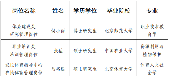 中央农业广播电视学校 中国农民体育协会2023年公开招聘应届毕业生拟聘用人员公示