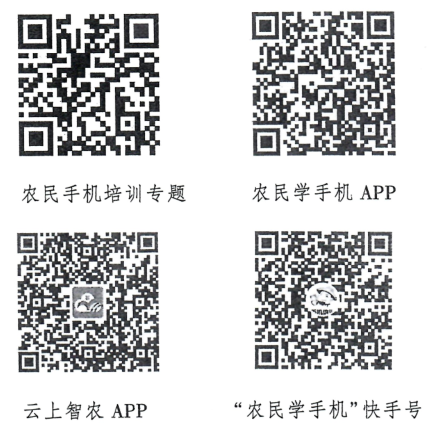 农民手机培训周活动将采用多种渠道进行直播。一是利用互联网,登录农业农村部官网或中国农村远程教育网“全国农民手机应用技能培训”专题观看;二是利用移动端直播,用手机登录农民学手机 APP、云上智农 APP ,点击进入直播专区即可观看;三是关注“农民学手机”快手号,进入即可观看直播。相关培训渠道可扫描下方二维码进入。