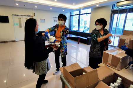 本网讯 3月5日,为纪念“三八” 国际妇女节110周年,在疫情防控关键时期,广校体协妇委会紧紧围绕“打赢疫情阻击战,立足岗位,争做最美巾帼奋斗者”主题,以关心关爱女干部职工为出发点,为全体女干部职工发放防疫消毒用品,开展疫情防控宣传服务,做到度佳节与抗疫情两不误,引导女干部职工积极应对疫情,在守护好单位、守护好家庭中发挥重要作用,为坚决遏制疫情扩散、打赢疫情防控阻击战贡献巾帼力量。广校体协党委副书记、纪委书记、工会主席张广卿和副校长、妇委会主任张丹梅参加了此次活动。