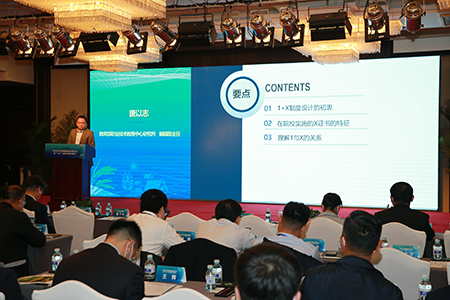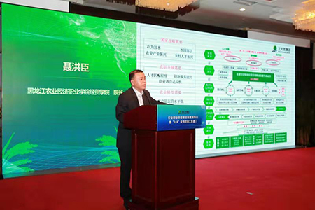 教育部职业技术教育中心研究所编辑部主任唐以志、江苏农牧科技职业学院动物科技学院院长赵旭庭、江苏省农业广播电视学校泰兴分校校长钱明、黑龙江农业经济职业学院经济贸易分院院长聂洪臣、北大荒集团人力资源部部长赵广来分别就1+X证书制度、三个职业技能等级标准、1+X证书试点工作做了详细解读和说明。