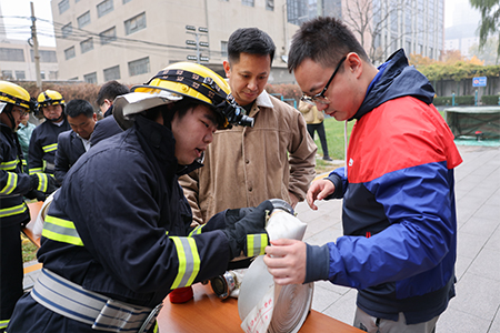 此次演练针对农广大厦建筑布局和设备设施及功能特点,设置了火警火情处置、人员疏散逃生、消防设备设施使用和微型消防站紧急启动等常规科目,同时开展了常用消防器材识别与使用的现场培训及实操演练。