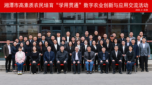 本网讯 3月26日至4月1日,在中央农业广播电视学校指导支持下,湘潭市高素质农民培育学用贯通数字农业创业与应用培训班(交流活动)在北京成功举办。中央农业广播电视学校副校长李仕宝,湘潭人才集团党委委员、副总经理陈蓝博出席开班式并讲话。本期培训班为期7天,涵盖理论教学、产业见识、数字赋能、实践实操等教学环节,共有来自湘潭市专业合作社、家庭农场、农业企业以及村集体经济等新型经营主体的近50名学员参加培训。