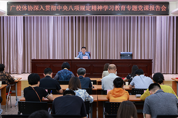 本网讯 日前,中央农广校、农民体协召开深入贯彻中央八项规定精神学习教育专题党课报告会,常务副校长、党委副书记,副秘书长宋聚国以“深入贯彻中央八项规定精神 以优良作风推动农民教育培训农民体育事业高质量发展”为题作专题党课报告。党委副书记、纪委书记张广卿主持,单位全体党员、干部参加。