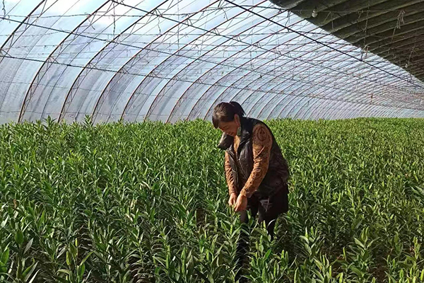 通过学习,她自己创新种植模式与茬口,总结出两茬西瓜,一茬花卉的栽种模式。第一茬西瓜在一月份定植,“五一”小长假期间上市;第一茬西瓜销售完,马上定植第二茬西瓜,七月上中旬上市;八月中下旬定植百合,新年前后花卉上市。这样的种植模式有效地利用了土地,不但增加了经济效益,还起到轮作倒茬的良好作用。