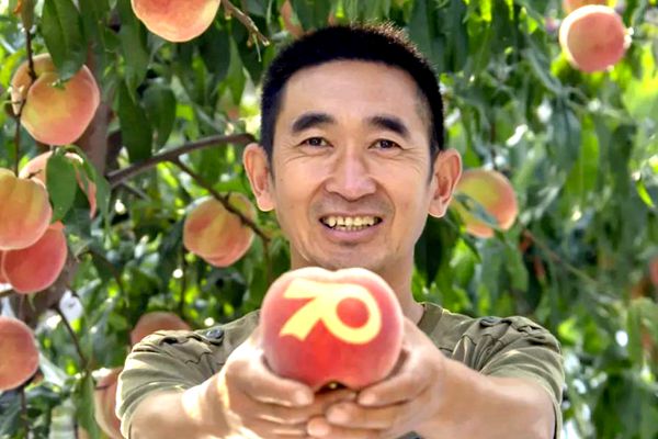 走进北京市平谷区兴隆庄村村民张宝志的桃园,“夭夭灼灼,颗颗株株。夭夭灼灼花盈树,颗颗株株果压枝。果压枝头垂锦弹,花盈树上簇胭脂……”这不就是吴承恩笔下的王母娘娘蟠桃园吗?2019年9月30日,带有“70”标识的平谷大桃登上国宴餐桌上,个头圆润饱满,颜色红艳欲滴。这些“国庆桃”,其中的一部分就是出自张宝志的桃园。
