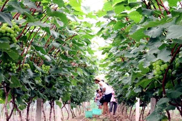 农场里还能长什么?经过一番考察思考后,沈万英在绿油油的稻田旁建立起联动大棚水果种植基地。葡萄园里主打黑珍珠、巨玫瑰、醉金香、夏黑和巨峰5个品种,根据时令,在6月下旬至9月中旬成熟。园内植株呈Y字形生长,行列笔直成线,不但藤架高度一致,连叶片数量、生长位置和果实的高度,也几乎被标准化。如今,在葡萄园中,新苗居多,多为3~4年生。在技术人员管理下,平均每株被严格控制8~9串葡萄,个个颗粒饱满,个大味甜,全年亩产量约在1000公斤左右。葡萄“住”在联动大棚,大棚顶高近4米,有天窗,又可加厚,冬夏气温可以调控,通风性好,抗风防湿性也好,因多雨而高发的葡萄霜霉病得以控制。园内种植,施以生物有机肥,并混合鸡鸭粪改良土壤,以人工除草为主,藤架下成群的鹅自幼在此“看家”,运动量大,也是除草“好手”。西瓜种植也精细化。每只瓜藤上,果实控制在2~3个,藤条顺地而爬。紧邻葡萄园还有一块自留地,地里走动着散养的鸡,有老母鸡、三黄鸡、苏北土鸡,价格每只120元至160元不等。草莓园里,一股清香扑鼻而来,饱满红艳的草莓在绿叶的映衬下更加娇艳水灵。“这里的草莓不需要洗,摘下来就能吃。”沈万英介绍,绿色生态是这里的招牌,采用“蜜蜂授粉,完全自然生长”。