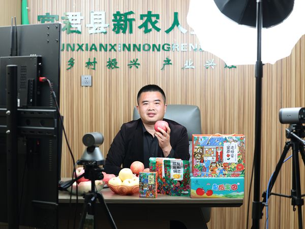 别看谭战现在是懂技术善经营的“新农人”,英语专业的他想转型农业,回乡创业种苹果,也下了不少苦功夫。毕业后,他进入农资领域工作,在广东、广西、湖北、甘肃、宁夏等地工作十多年,积累经验。然而时间越长对家乡的思念之情就愈发浓烈。于是在2018年,谭战下决心返乡创业,成立宜君县皇后生态农业有限公司,整合家乡的苹果、蜂蜜、核桃、小米等优质的农特产品开展线上销售。因为当时家乡的苹果没名气,谭战送客户的时候,没有自己的包装箱,需要到白水去买写有“白水苹果”的箱子,客户收到苹果以后还说,“小谭你家这白水苹果不错,好吃啊!”听了这话,谭战心里不是滋味,倒不是因为白水苹果不好吃,而是家乡的苹果也应该有自己的名字。“宜君是全世界苹果优生区,无论气候、温差、海拔还是土质,宜君苹果都占优势,我们为什么不能创立自己的品牌,让皇后村苹果,宜君苹果也能走出陕西,走向全国,走向世界?”胆大心细的谭战以家乡“皇后村”为名创立了自己的品牌,希望能为家乡苹果正名。