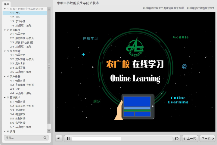通过学习二化螟的形态特征、发生规律、发生条件、防治技术等课程内容,能够帮助学员识别不同形态二化螟,比较不同世代发生规律和不同形态的生活习性,并能适期适法防治二化螟,最终实现水稻高产丰收的目的。