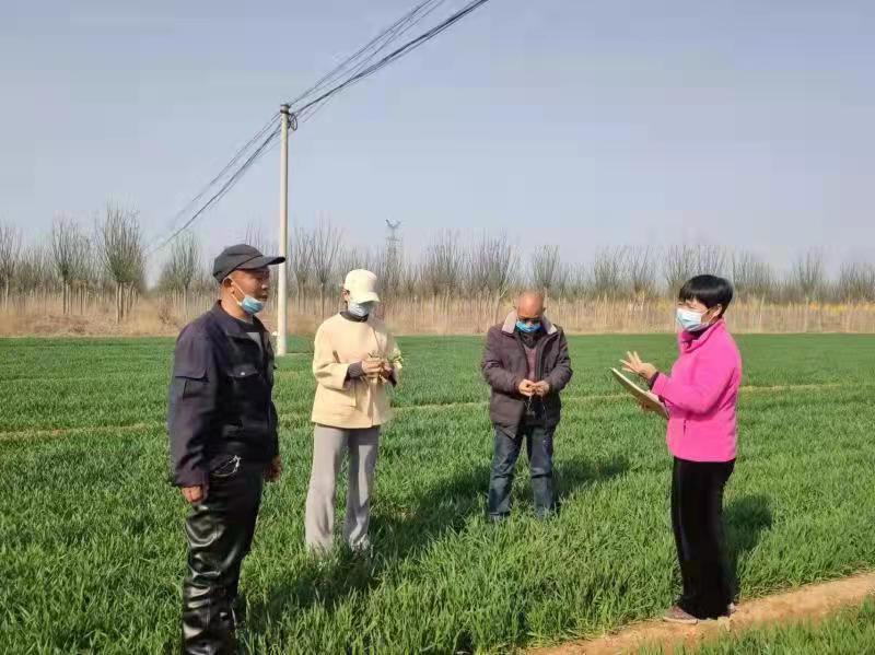 ▲ 武陟县农技人员在谢旗营镇程封村指导农民开展春季麦田管理