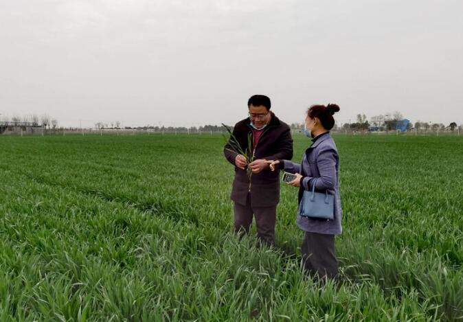 2022年03月30日,接到甘河街道晏平寨村村民咨询小麦叶片发黄症状的电话,刘琳带领同志们第一时间前往麦田查看解决问题。