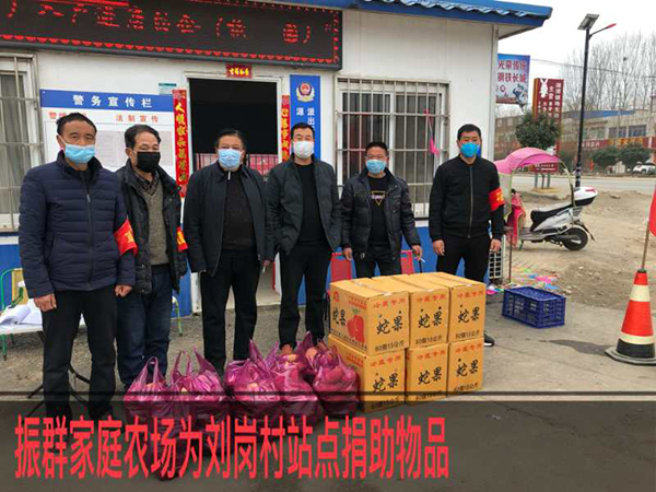 作为土生土长的源潭人,乔振群在关键时刻也不忘周边村委防疫卡点的的一线抗疫人员。分别为九个村委捐赠了苹果和红薯:刘岗村,苹果6箱,红心蜜薯,800斤。田庄村,苹果6箱,红心蜜薯800斤。小李店村,泡面6箱,红心蜜薯,800斤。马湾村,泡面6箱,红心蜜薯,800斤。闫庄村,泡面4箱,苹果2箱,红心蜜薯800斤。党坡村,苹果15箱。红心蜜薯,1000斤。张监庄村,苹果,4箱,红心蜜薯,800斤。良于庄村,10箱泡面,红心蜜薯800斤。竹园村,红心蜜薯800斤。这些物品合计价值2万多元。他说:“你们舍小家为大家,为我们乡亲筑起了一道坚固的防护城墙,我们的安逸生活都是来自你们在前线的日夜坚守,唐河县振群家庭农场,代表父老乡亲们来谢谢你们,你们辛苦了!”
