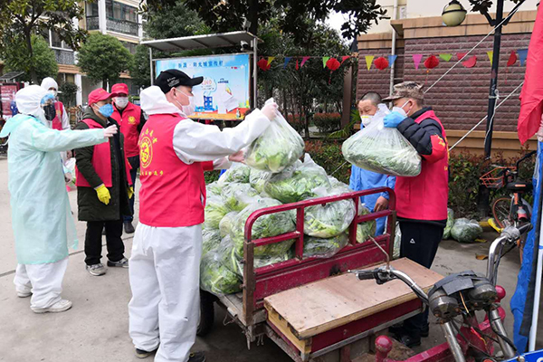 志愿者为居民购买物资