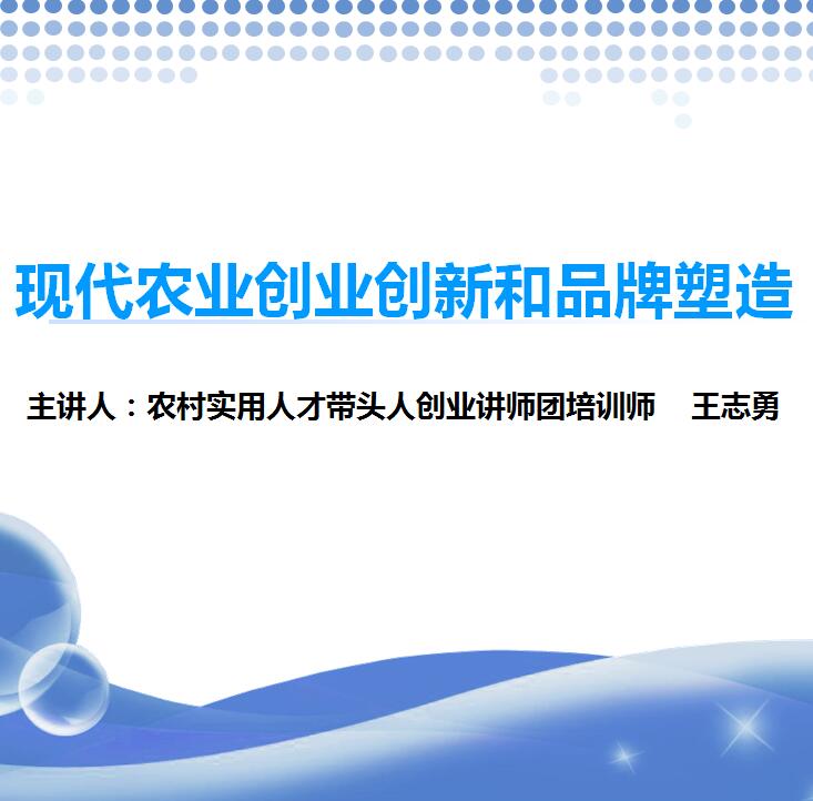 现代农业经营理念和素养| 农业创业创新指导| “互联网+”与农业转型升级| 农业生产全程标准化| 绿色循环农业生产模式| 农村电商| 合作社经营管理| 农产品品牌建设| 农产品市场营销|