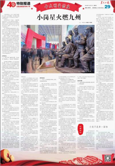 小岗40年一路走来,从改革地标跃升为精神高地,始终凝聚了小岗人敢闯敢试、求真务实、自我创新的蓝色风骨,激励着我们一路披荆斩棘、风雨兼程、破障前行。