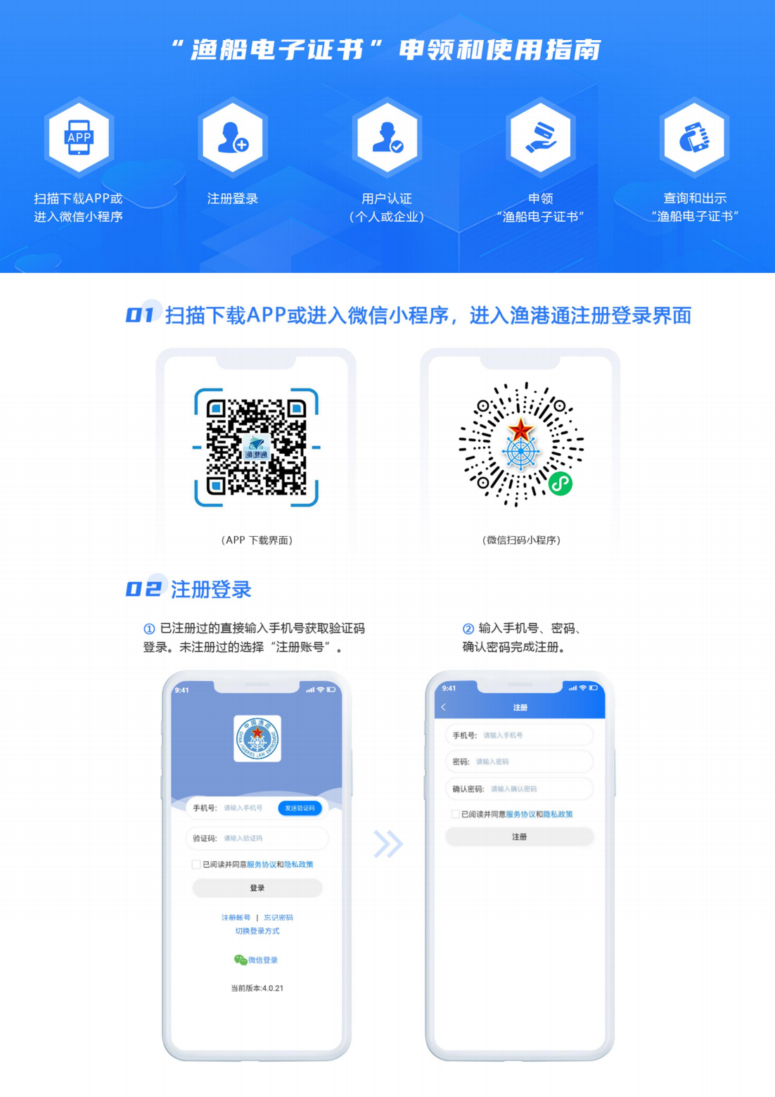 为便利渔民使用渔船证书,提高办事效率,农业农村部决定启用国内渔船电子证书。《渔船电子证书申领和使用指南》如下。
