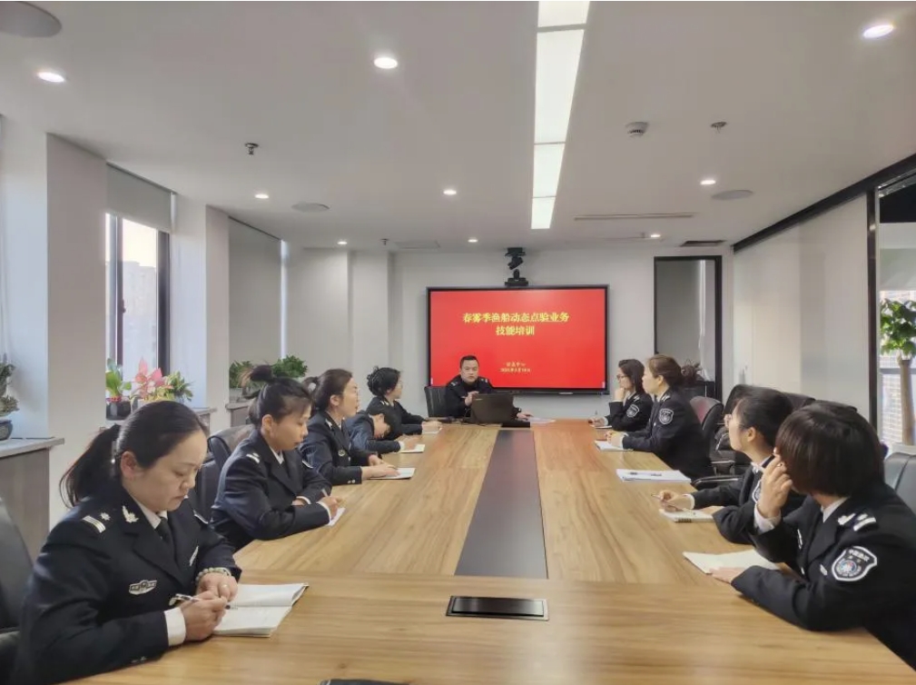 本次培训复盘以往经验,强化风险防控。培训会上,县渔业指挥中心系统梳理了全国“两会”期间及近期大风天气下的渔船管控经验,通过案例分析查摆薄弱环节,优化应急预案。针对春雾季能见度低、渔船作业风险高等特点,重点强化了避碰规则、防触礁预警等季节性风险防控措施,确保点验人员精准识别并快速响应海上突发情况。
